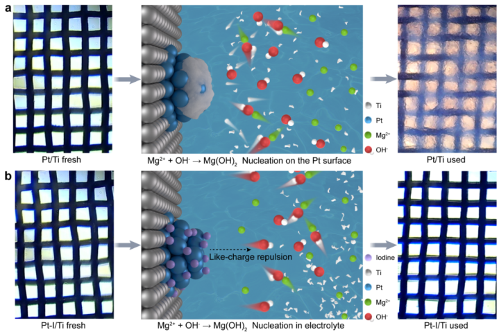 当前民信配资端,电解淡水制氢成本高、资源消耗大。海水是理想的制氢原料,但其中富含的镁离子在电解过程中易在电极表面沉积,导致电极快速失效。